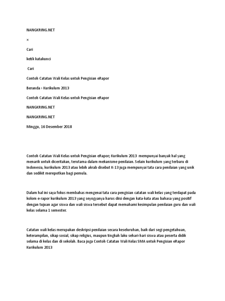 Contoh Deskripsi Karakter Catatan Pengembangan Dan Catatan Akademik from imgv2-1-f.scribdassets.com Catatan wali kelas di raport. We did not find results for: Maybe you would like to learn more about one of these? Check spelling or type a new query.