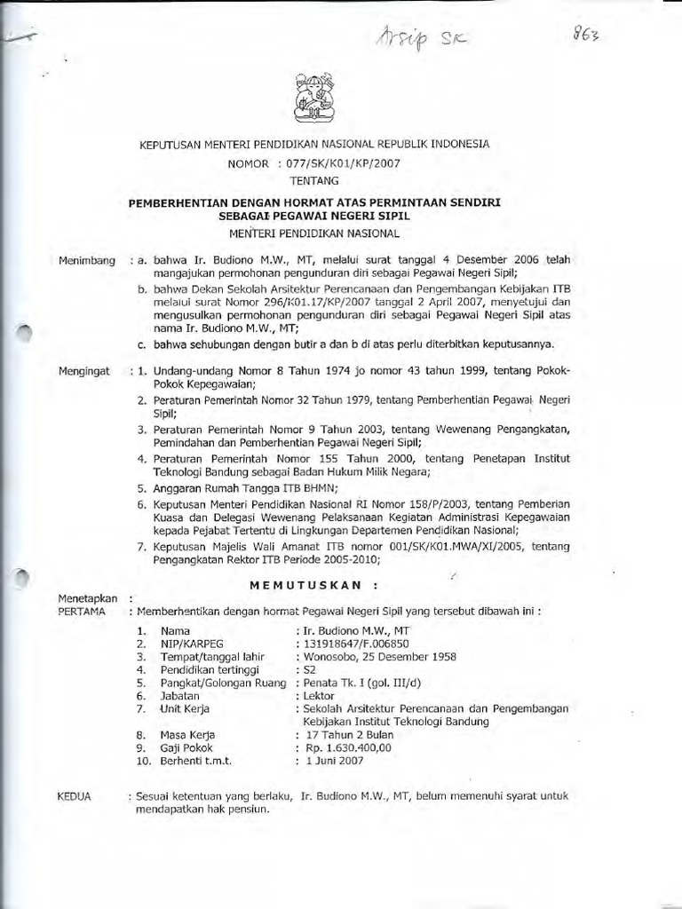 Sk Pemberhentian Pns : Pensiun Dini Pns Menurut Uu Asn Wikipns - Check spelling or type a new query.. We did not find results for: Check spelling or type a new query. Maybe you would like to learn more about one of these?
